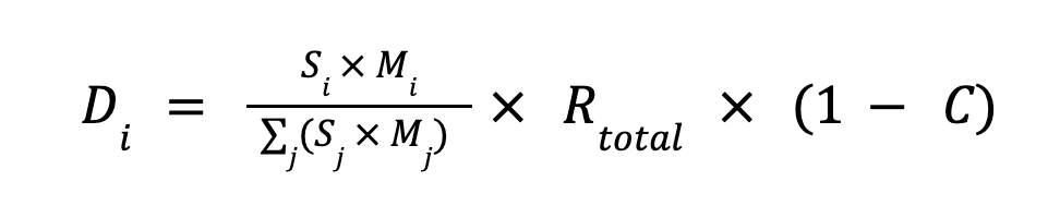 - R_total is the total inflationary tokens allocated for the rewards pool